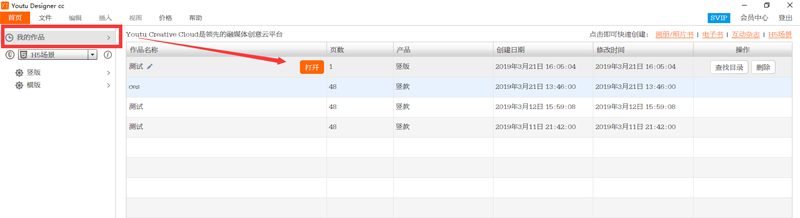 如果需要修改已经发布的H作品,先打开软件,在“最近作品”中找到相应作品的源文件进行修改,如下图所示: