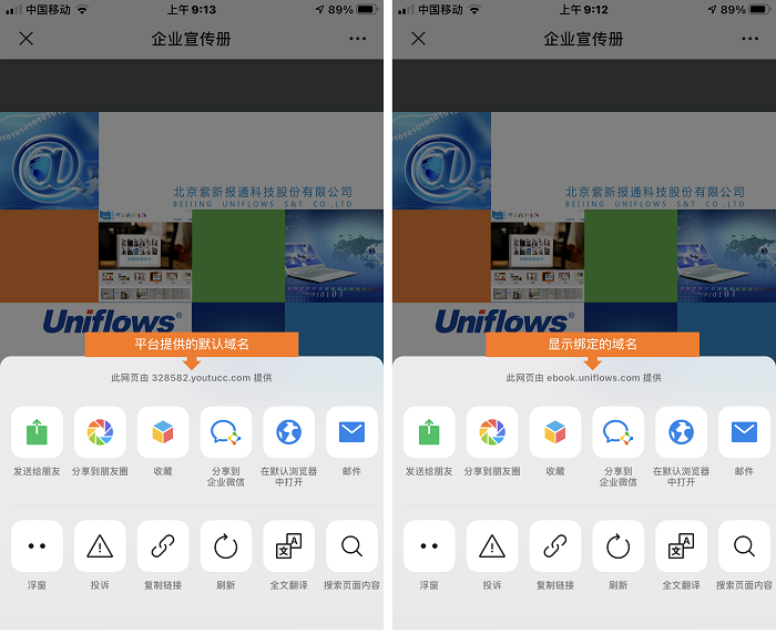 将您账户下所有作品的链接地址的有图官方提供的域名绑定为您企业官方域名,更高的个性化品牌曝光度,此项服务按年收取,为开通后账户下所有作品链接拥有的特权。