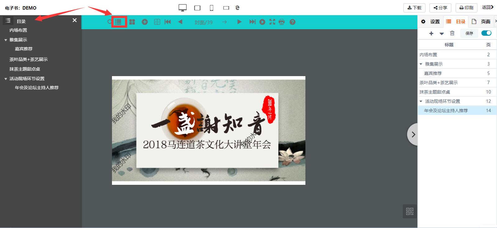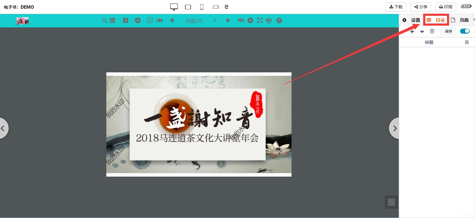 通过上传PDF或者图片文件生成的翻页电子书,如何设置目录导航呢?具体步骤如下: